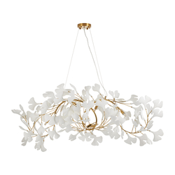 Ta okazała lampa wisząca to prawdziwe arcydzieło designu. Jej wieniec złożony z delikatnych, ceramicznych liści ginkgo oplata złocisty stelaż, tworząc efekt zawieszonej w powietrzu rzeźby. BOTANIKA 150 doskonale wygląda w przestronnych wnętrzach, podkreślając ich elegancję i wprowadzając ciepłe, nastrojowe światło.
